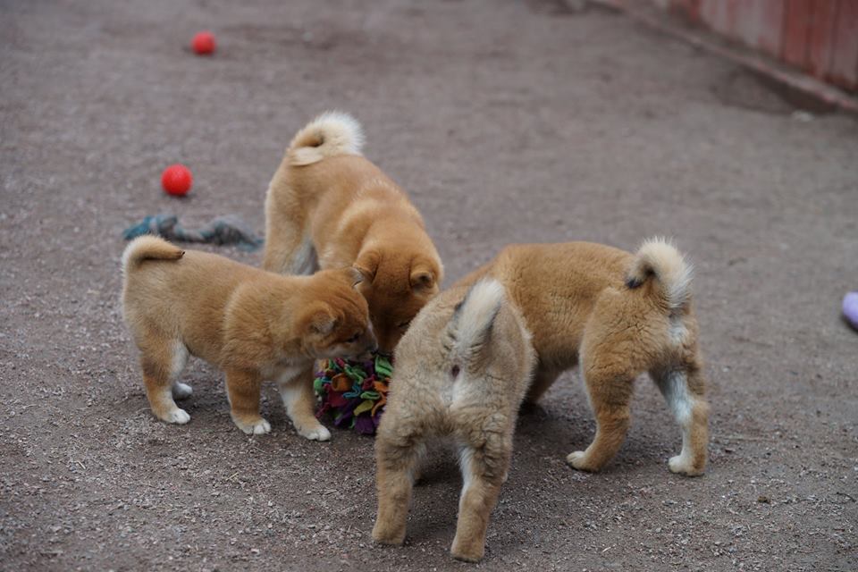 My all-time favorite feature of the Shiba is their precious howl and the noises they make instead of barking. WHAT COULD BE BETTER THAN A DOG THAT DOESN’T BARK!?! Okay, maybe a dog that doesn’t shed. Shibas don’t have that going for them. But everyone has to have a downside. But if that doesn’t get you, wait til you see how much of a ball of fluff they are when they are puppies!! Okay, that is my favorite Shiba feature. (PS – they come in such cute colors!! All red, mostly black, all white, and a mixture of red and black.)