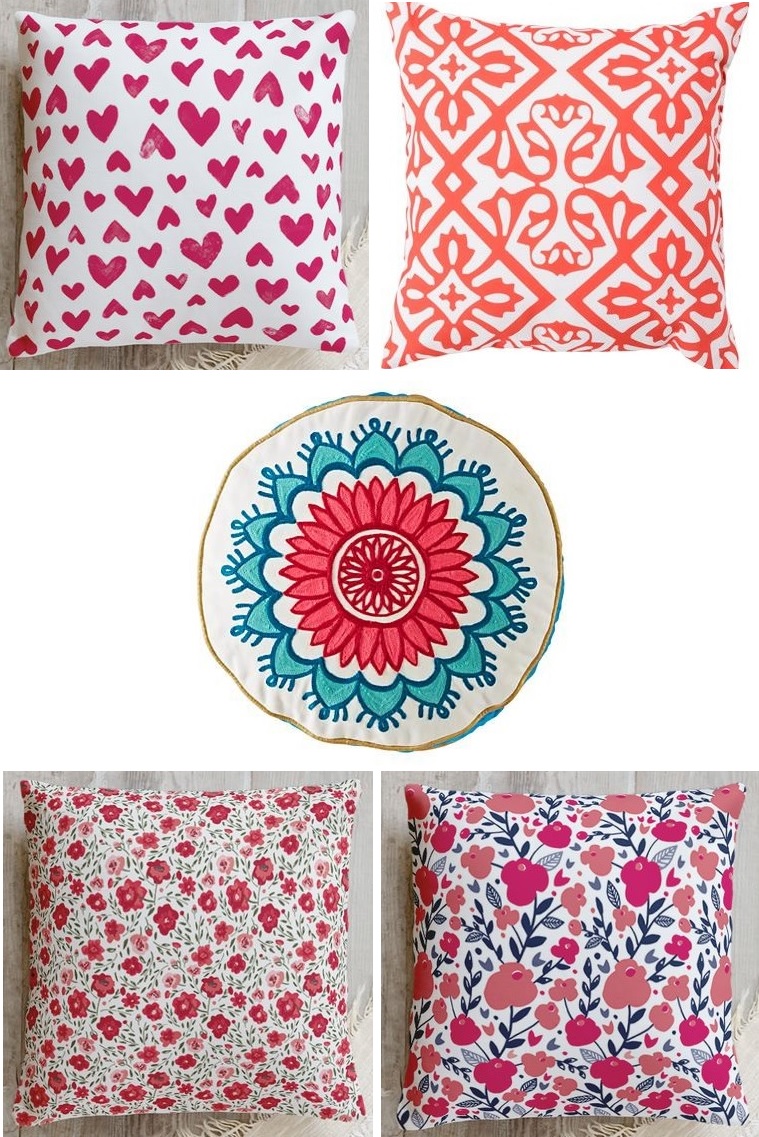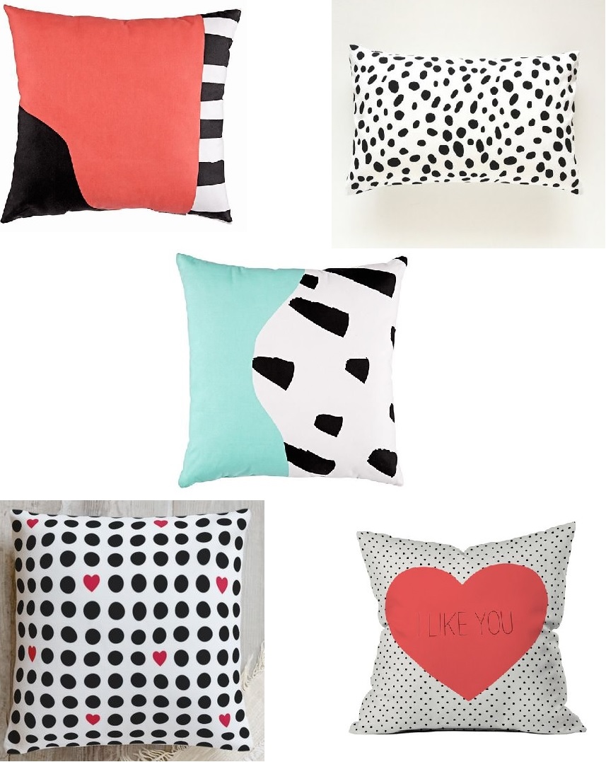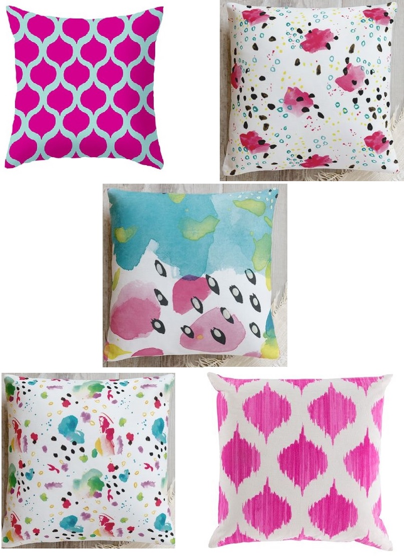 Finding inspiration (and sales!) from this month’s HGTV magazine, I ordered a colorful new pillow to brighten up our couch. We don’t have decorating in the budget right now (oops), but I couldn’t help myself! We needed some COLOR. I went on a pillow rampage afterwards and looked up tons of fun, bright pillows – mostly from minted, but from a few other websites too (Layla Grace and Land of Nod). So, here’s a rainbow of pillows to brighten your day.
