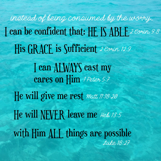 I obviously am in a different situation than she is, but with the start of a new school year I have found lots of worries inside my head and heart. I love all of these scriptures, and the way she pulled truth out of each of them seemed so fitting to save as a reminder to calm my fears, knowing that God is enough.