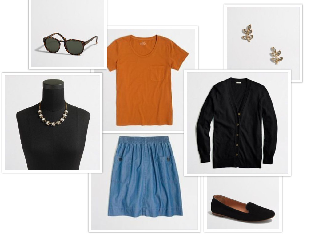 (I snagged the pumpkin shirt and chambray skirt – I can’t wait to wear them walking around campus with the leaves crunching under my shoes and a slight breeze!)