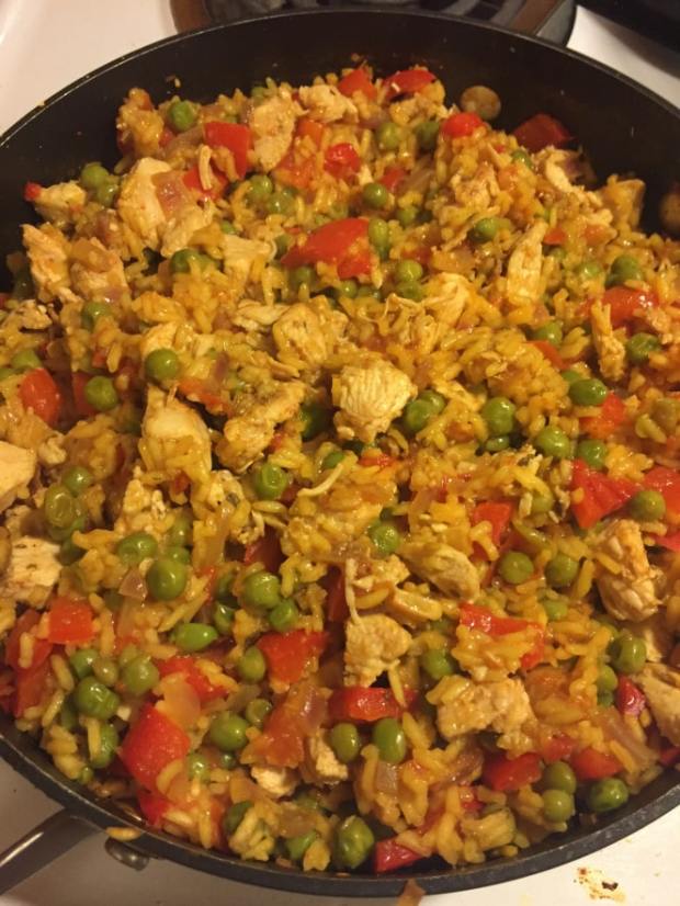 - 2 cups (1 bag) yellow saffron Spanish rice (uncooked)