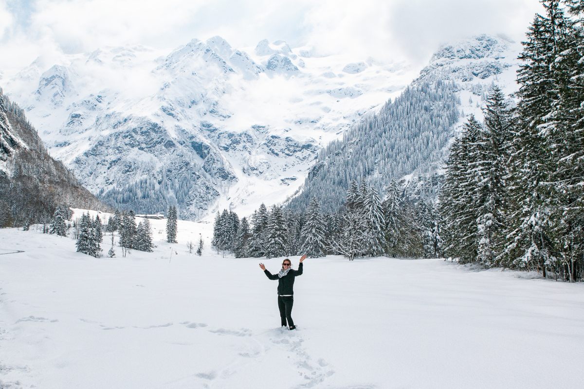 Instead, after winding down highway after highway hedged in by such beautiful spring views that practically made our eyes pop out of our heads, we turned off the main road to climb the mountain taking us to pristine hiking destination Furenalp, and in less time than it would take to make an Instagram reel, our surroundings transformed into nothing short of a winter wonderland.