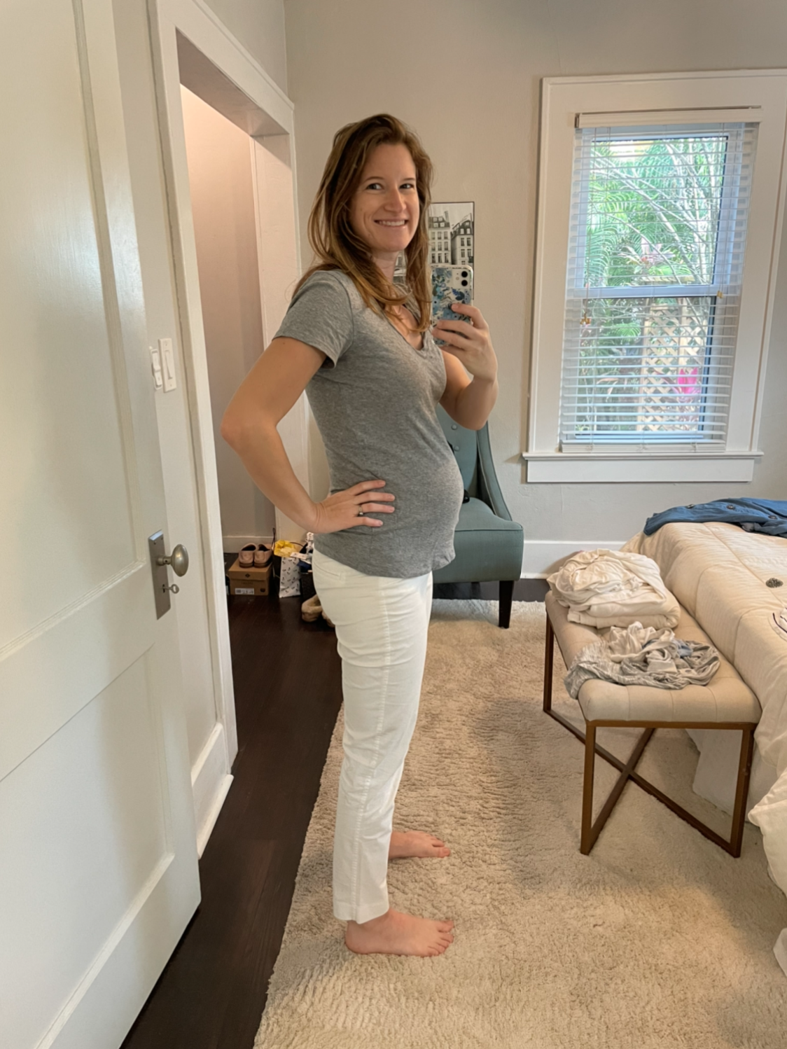 As soon as I hit 18 weeks, the constant need to pee snuck up on me. There was one day we were getting ready to leave the house and I went to the bathroom before I started getting ready, and then went one more time before we left the house. Then AS SOON AS I WALKED OUT THE DOOR, I felt like I needed to pee again! What! Since that day it’s been a constant struggle, haha. So it really is true, pregnant women need to pee ALL the time. (Another reason I’m SO thankful to not be living in Paris while pregnant! Public restrooms are so few and far between.)