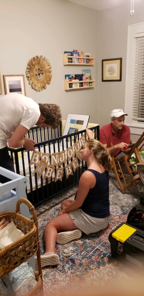 I feel SO loved because we had not one but TWO incredible baby showers!! I was very fearful that we wouldn’t have one because of living in a new state and because of the pandemic. But my sister-in-law, mom, and best friend from high school threw us one in Virginia for family and long-time friends, and our new friends here threw us one for our friends from work, church, and a few people that happen to live close by that we know from other seasons of life. Both of them were so sweet and detailed and very much my style (the one in Virginia was French garden theme, and the one in Orlando was tasteful red/white/blue with an emphasis on French foods), and we had so many wonderful guests that we felt so blessed to get to see and catch up with. Overall, we were just floored from both of them with how excited people are for us and to meet our little guy!! I am so grateful. (And because of them, we have all of the aforementioned plentiful baby items to get Baby J started in life!!) So, both showers were huge highlights for feeling the love of people coming around us and supporting us, and we are so thankful Baby guy is so loved already. (Also, PRAISE, our trip to Virginia went very smoothly – I felt fine and both our flight there and drive back to FL were super smooth and safe.)