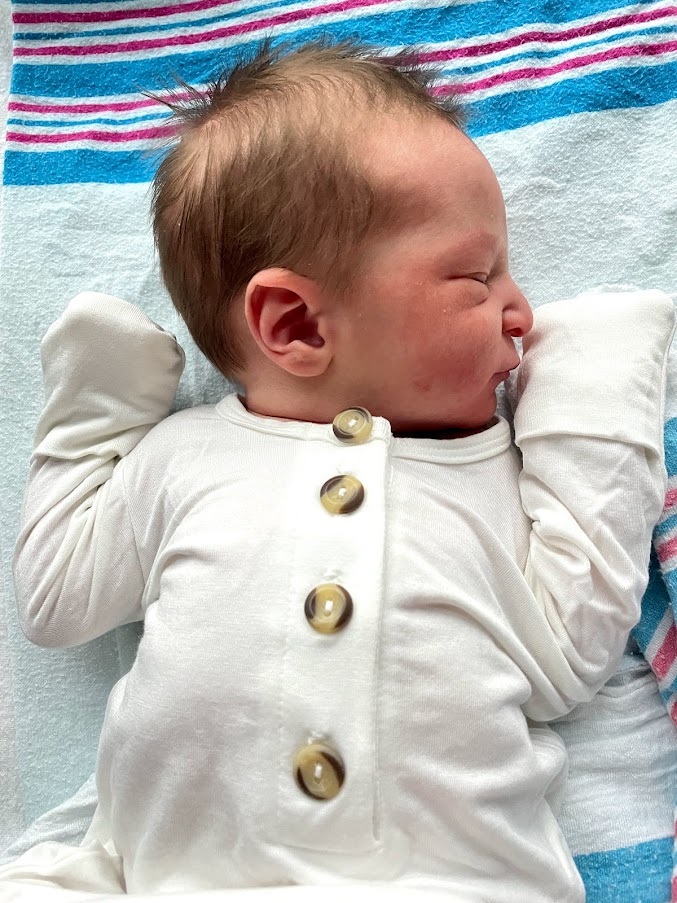 He was born on July 13, 2021 at 7:44am weighing 7lbs 7oz and measuring 20.5 inches long.