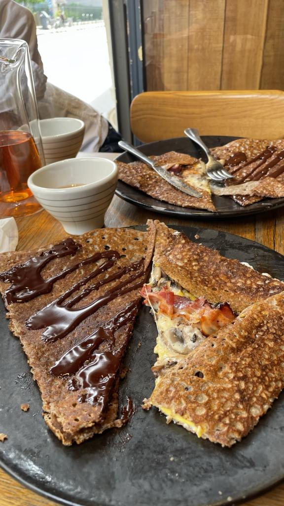 Then we had a nice lunch at a creperie I had been dying to try in the Marais, called Breizh. It’s chic and casual, and very trendy. We sat inside the restaurant right next to an open wall opening up to the sidewalk. We very quickly realized that finding seating in Paris with Arthur would be tricky.