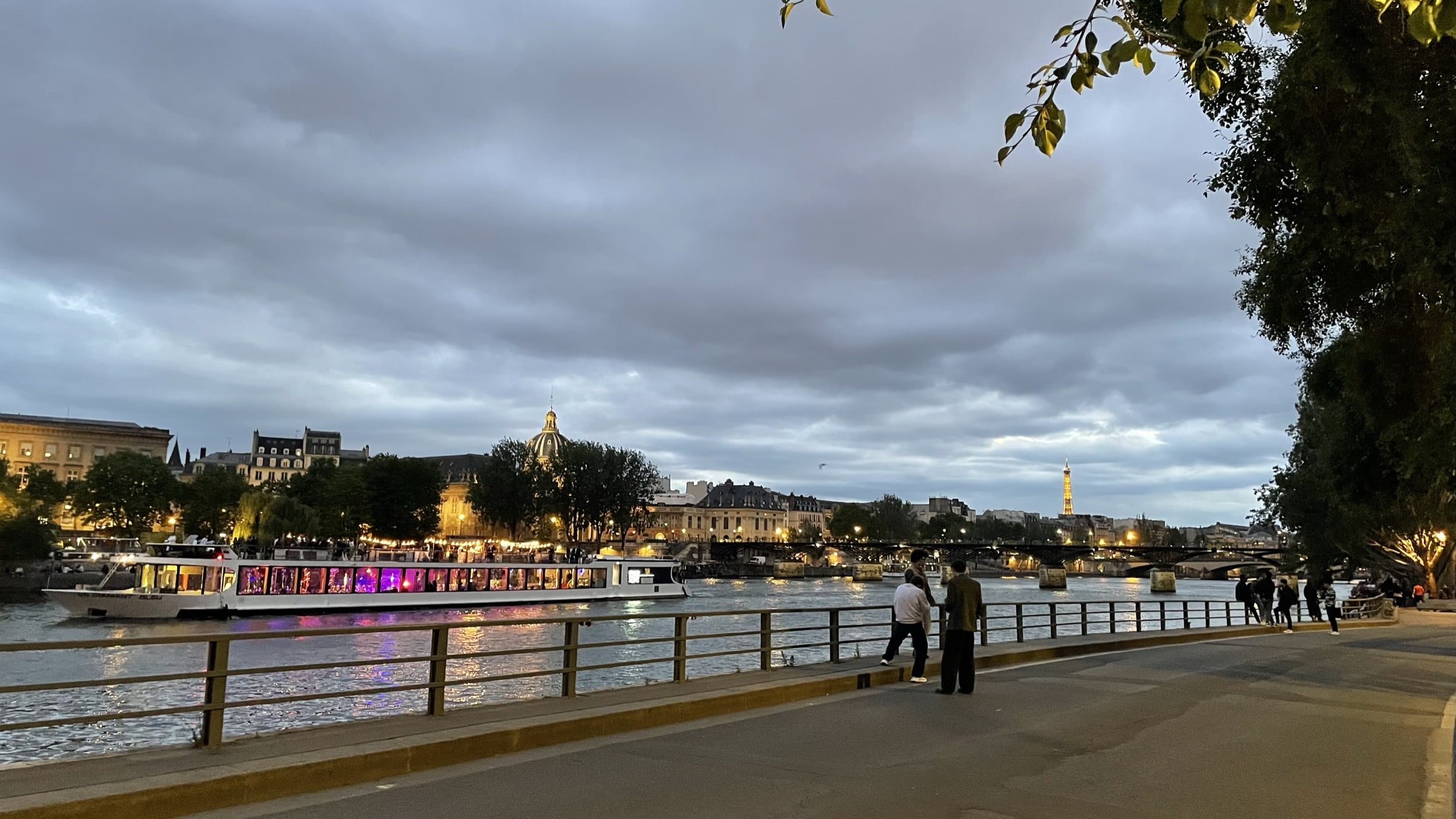 The weather wasn’t looking impeccable, but we didn’t want to waste any time getting to one of our most anticipated activities – a casual picnic and bottle of wine on the Seine at sunset! As a couple, this was our favorite date night when we lived in Paris.