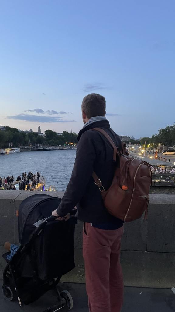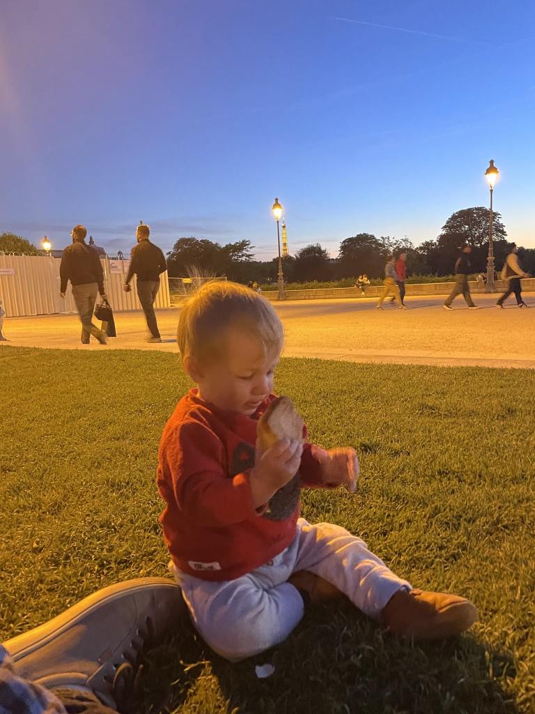 It was also almost sunset, and Whit had decided he wanted to see the sunset and eat more of our packed dinner at the Tuileries garden, so we decided to make the trek there along the river. I couldn’t walk more than 30 seconds without stopping to take a picture (THE LIGHT! The river! The bridges!), all three of us were exhausted, and we accidentally got caught in a shoulder-to-shoulder crowd of people listening to a band on the sidewalk (we shoved the stroller right through, miraculously Arthur stayed awake and no one spilled beer on us). We were fairly miserable by the end of the night, so we learned our lesson that we shouldn’t try to power through and max ourselves out. The rest of the trip we made meeting our primary needs, especially Arthur’s, more of a priority and dialed it back a notch.