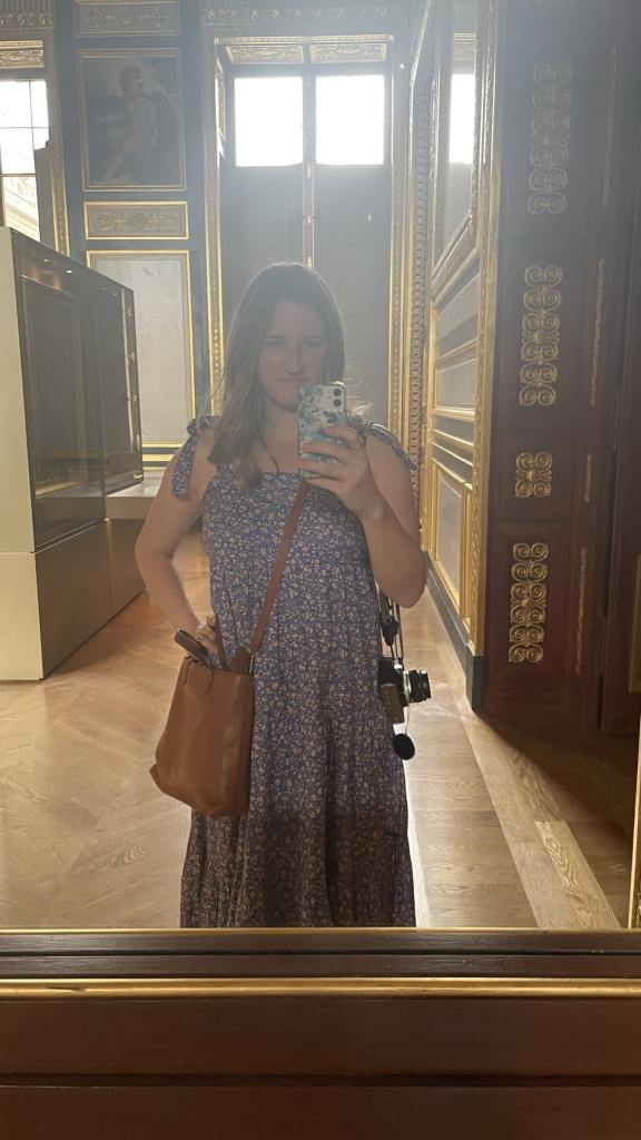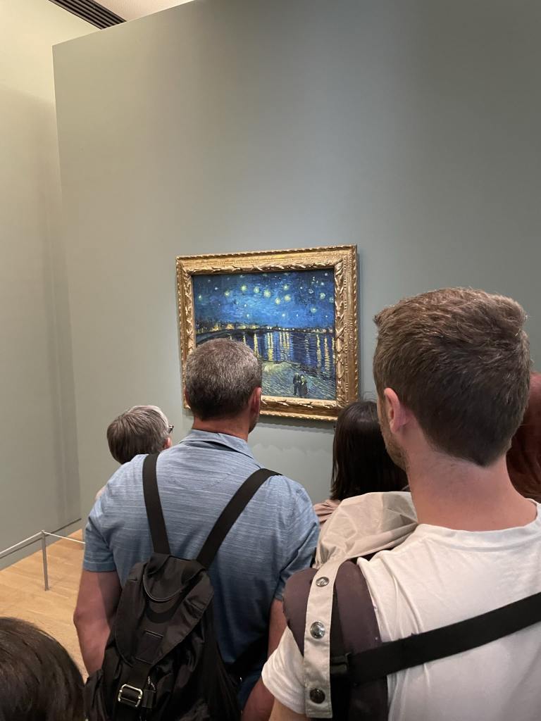 We were so short on time that I gave up on trying to find the entrance and seeing the clock tower, and just pushed my way as fast as I could through the crowds. Keep in mind Whit now has Arthur in the carrier (hoping he’ll nap through the exhibit) and I am pushing an empty stroller against the flow of ALL the people leaving the exhibit. People don’t get out of the way for an empty stroller like they do with a kid in it, hah. I felt a little crazy for that and frantic that I wasn’t going to see the paintings I came for, but eventually I took some deep breaths and found Whit and started enjoying being there. This occurred right around the time we happened upon Van Gogh’s Starry Night. I gave myself a little nudge to see what I was looking at and appreciate it. 😉