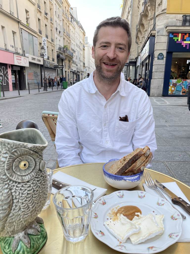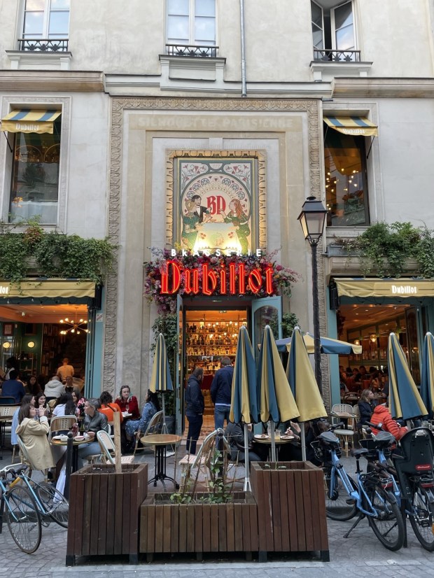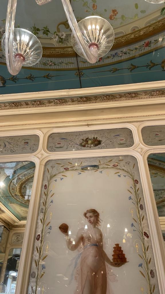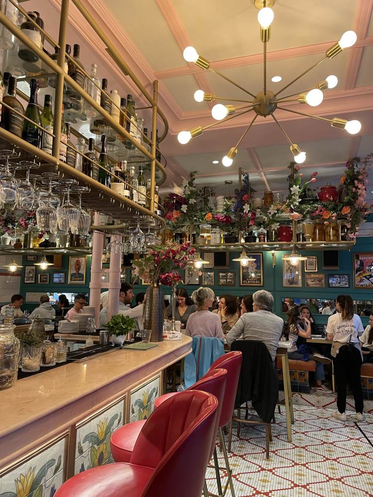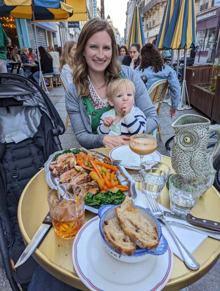 After all the nostalgia, we headed to our splurge meal – both in terms of money and committing to sit at a restaurant with a baby, haha! I had seen this restaurant recently on a blog and thought it was gorgeous, so when I looked it up and found out it was on our old street, I knew we had to go if we could make it happen! It had 100/100 ambiance (totally my style with the maximalism, art deco, teal and gold, and quirky details like the ceramic owl that was our water carafe) and the food was amazing. The concept is old-style French brasserie but with a fresh take on the traditional menu. If we only got to one “real” French restaurant, this was the perfect modern twist on a classic.