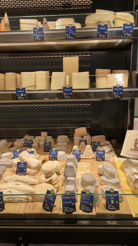 The only plans we had for the rest of the day were finding good cheese and picnicking in front of the Eiffel Tower. We searched rue Montorgueil, but unfortunately our favorite fromageries were closed because it was Sunday. We finally found a place that was open. I’m being very snobby when I say they didn’t have a huge selection, hahah (picture below), but it was better than plain old grocery store cheese (which is still AMAZING in France, let’s be clear!!). I’m a little disappointed in how much good cheese we got during our trip, but I have very few regrets so it’s fine.