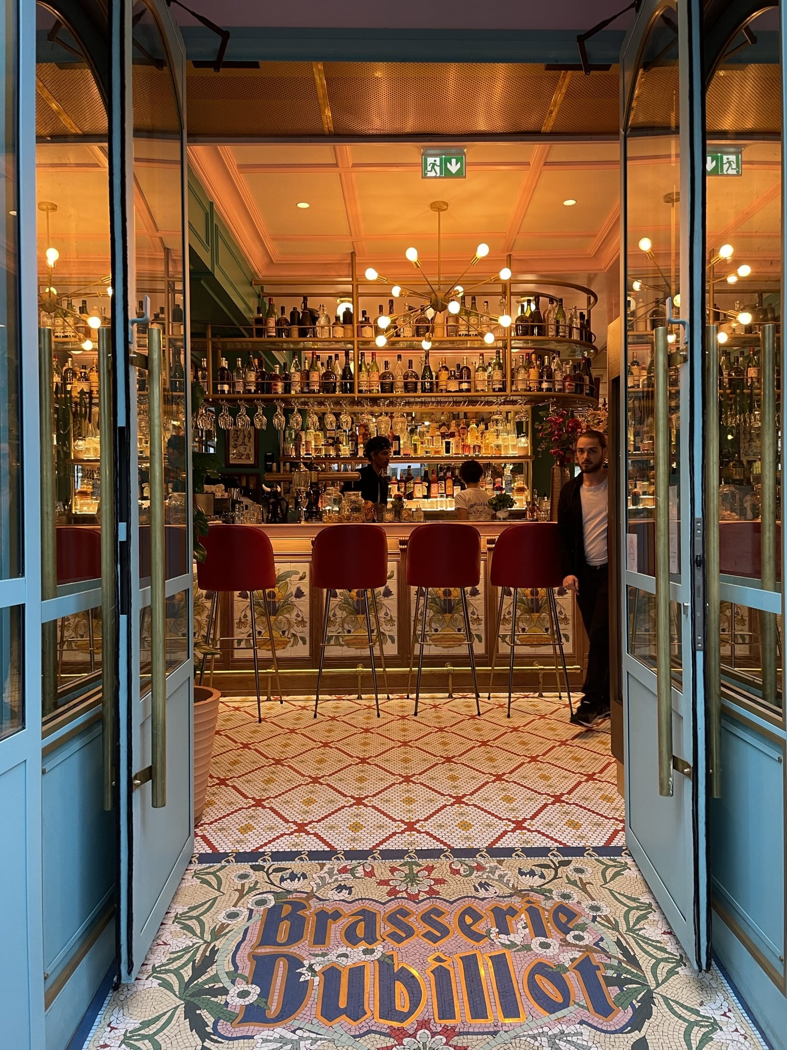 After all the nostalgia, we headed to our splurge meal – both in terms of money and committing to sit at a restaurant with a baby, haha! I had seen this restaurant recently on a blog and thought it was gorgeous, so when I looked it up and found out it was on our old street, I knew we had to go if we could make it happen! It had 100/100 ambiance (totally my style with the maximalism, art deco, teal and gold, and quirky details like the ceramic owl that was our water carafe) and the food was amazing. The concept is old-style French brasserie but with a fresh take on the traditional menu. If we only got to one “real” French restaurant, this was the perfect modern twist on a classic.