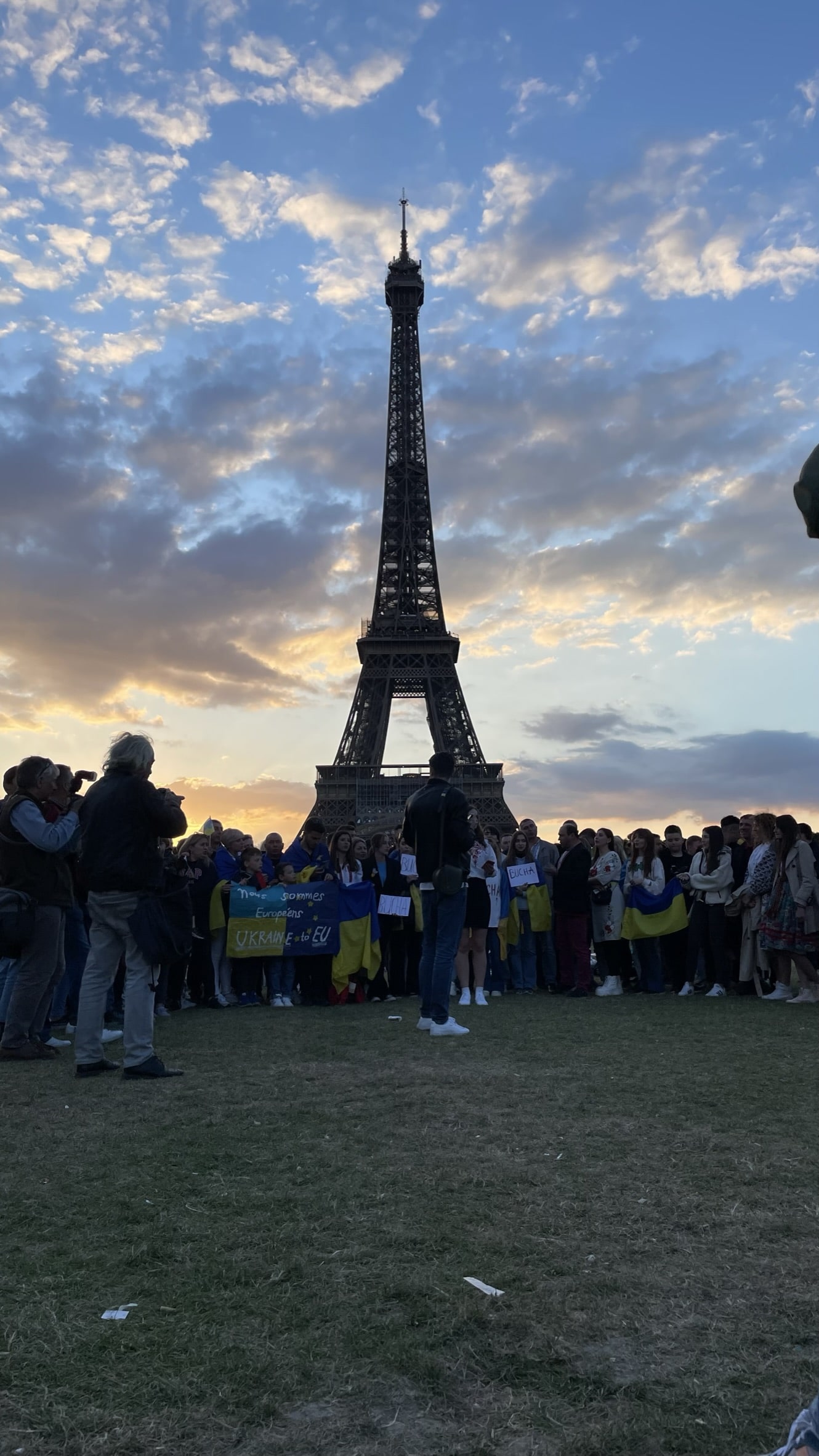 A sombering moment was when the groups around us gathered, hugging their Ukrainian flags and holding up raising awareness for the war crimes in Bucha. We had a front row seat as they filmed a video, sang, and cheered. One of the signs they held said in French, “We are European: Ukraine to EU.” I hope they felt welcomed wherever they went!