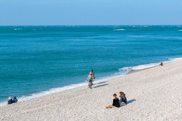 If you walk directly through the town, you’ll hit the beach. The sound of the calm waves gently crashing over the smooth rocks was so peaceful on a crisp Februrary day.